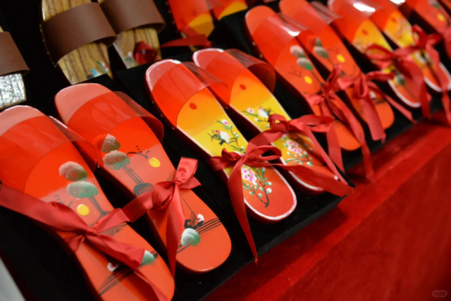 ▲传统红漆描花木屐(图源:@梁茶cooltea)